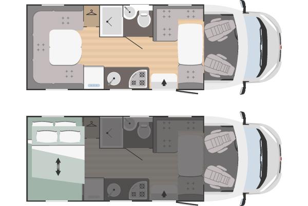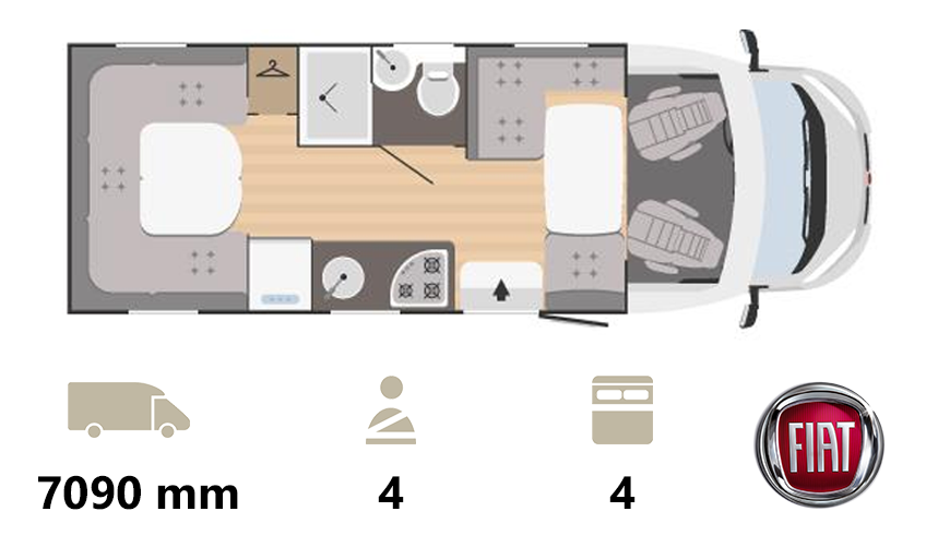 Modelul 30P se remarcă prin configurația de dormit tip pat transversal, optimă pentru cel puțin 4 locuri de dormit și 4 locuri omologate.