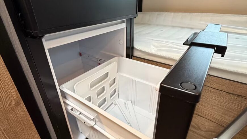 - Un frigider mare de 97l și un rezervor de apă curată generos de 20+80 litri. Poți depozita în siguranță alimentele și băuturile.